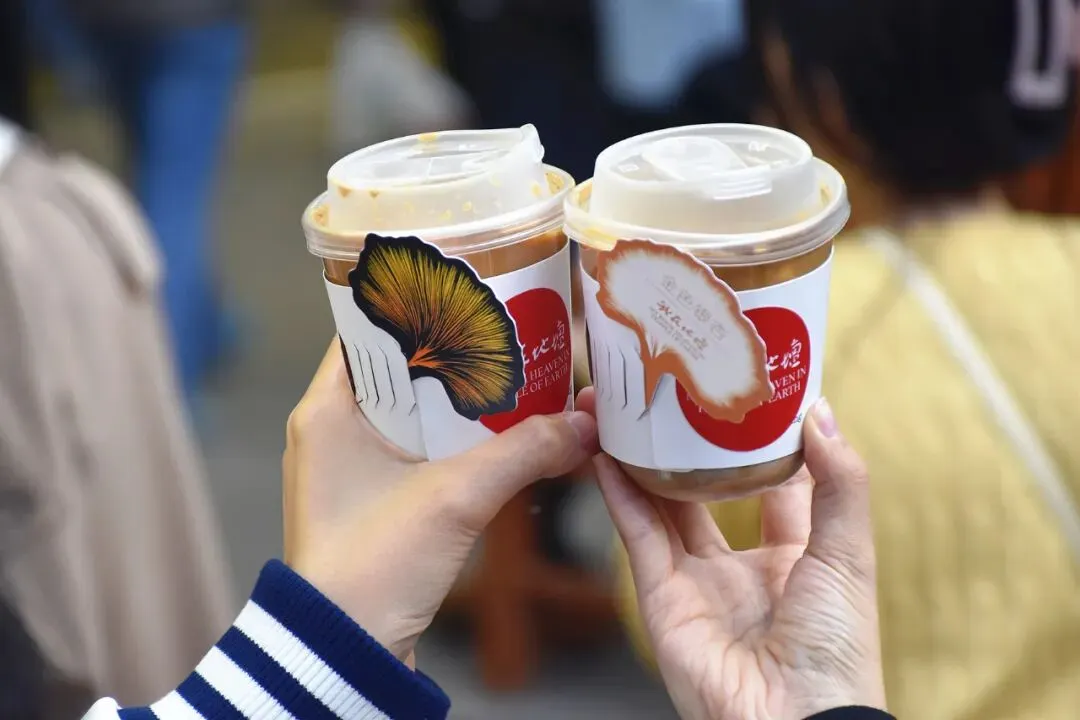 △地坛银杏文化节上,年轻人购买限定咖啡。(图/视觉中国)