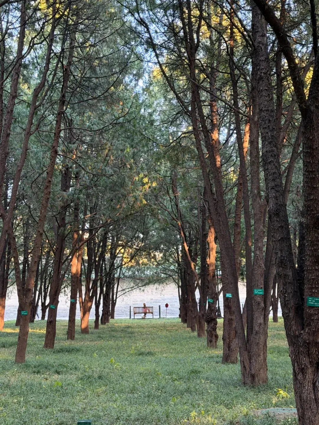 如今,这个“最抽象景点”在地图App上都拥有了标记。从地坛公园南门进入,右手边就是一片葱郁的树林,往树林深处走,一群人举着相机排队的地方,就是“地坛的海。”