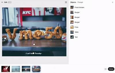 我们还试着把生成好的图编辑了一下。这个阶段的操作非常直观,Reve会把每张图里的主体识别出来,用户可以像PPT一样拖拽位置改布局。